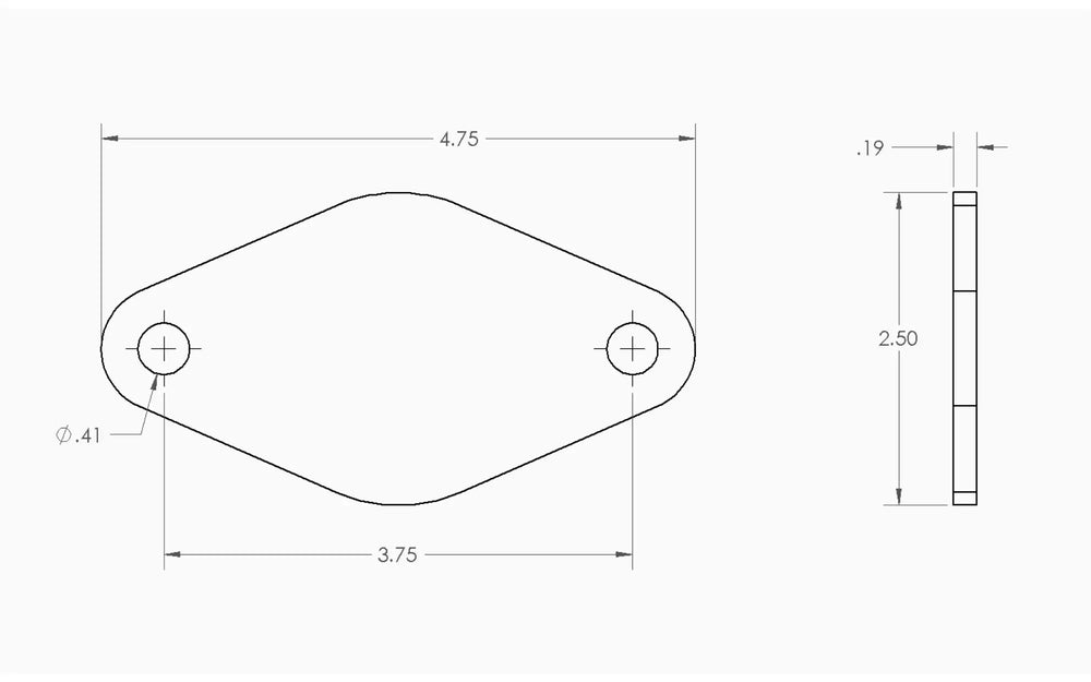 This large oval solid mounting plate is a versatile solution for structural reinforcement, cage mounting, shock stiffeners, or anywhere you need solid access or connection points. It's laser-cut from 3/16" HR P&O steel and features four 3/8" bolt holes, spaced to match our 4-hole plate (Part R2072).