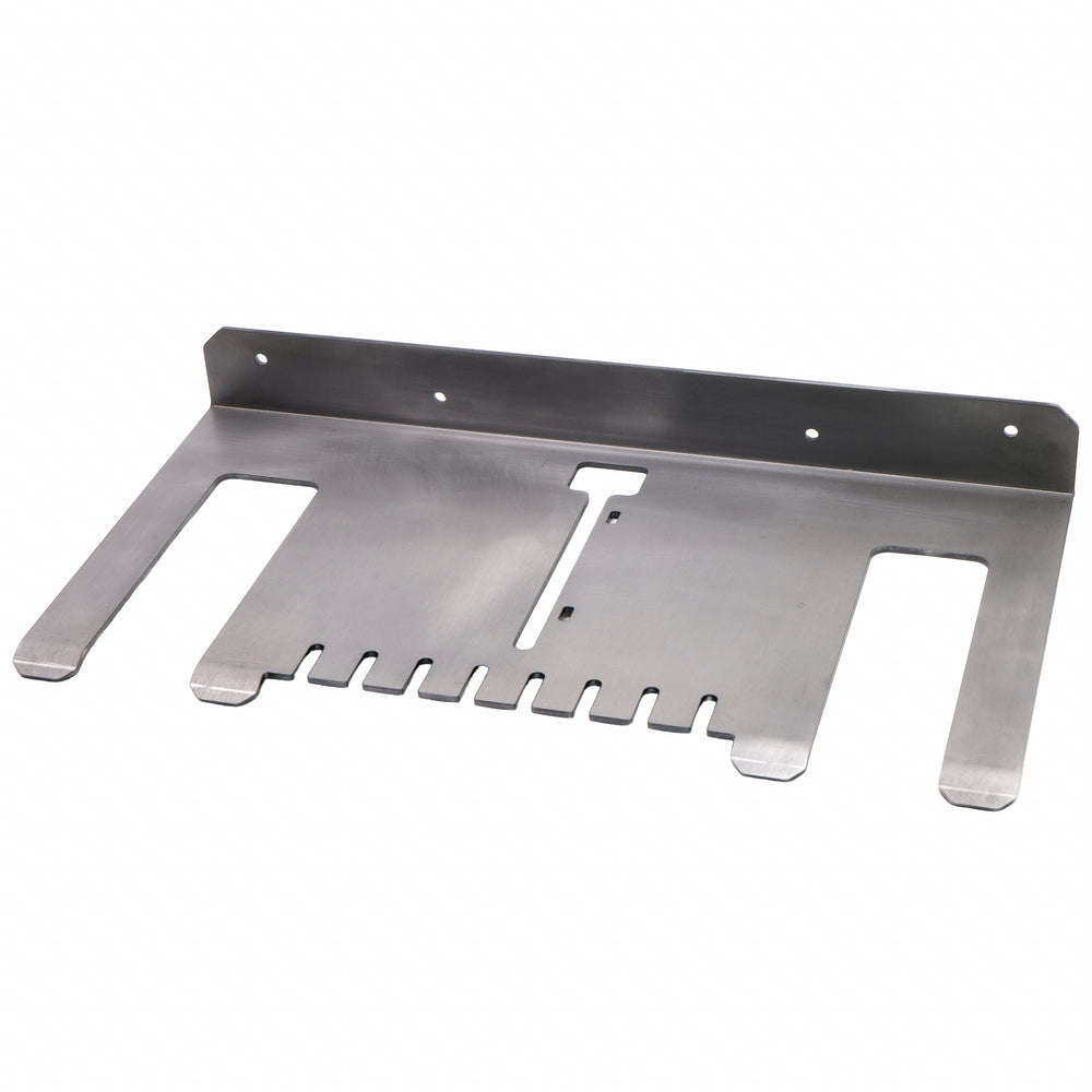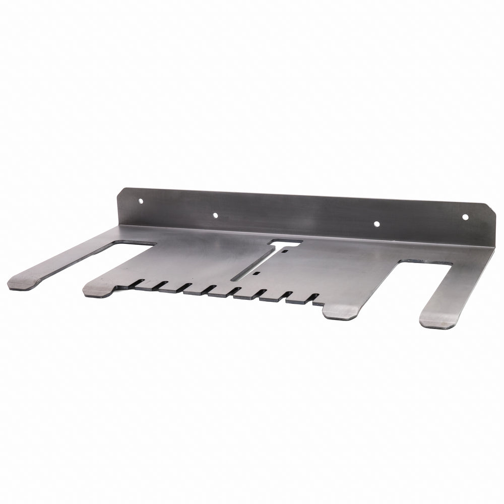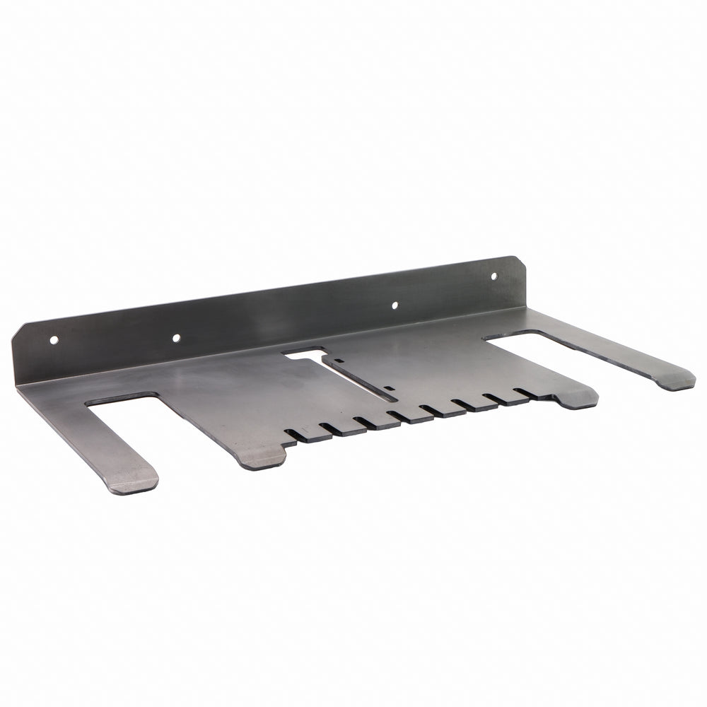 This holder is built from .104" steel and designed to store two cordless drills or impact drivers along with a charger. It keeps your most-used tools organized and easy to access in one spot. The cutouts are sized to fit most standard cordless drill handles.